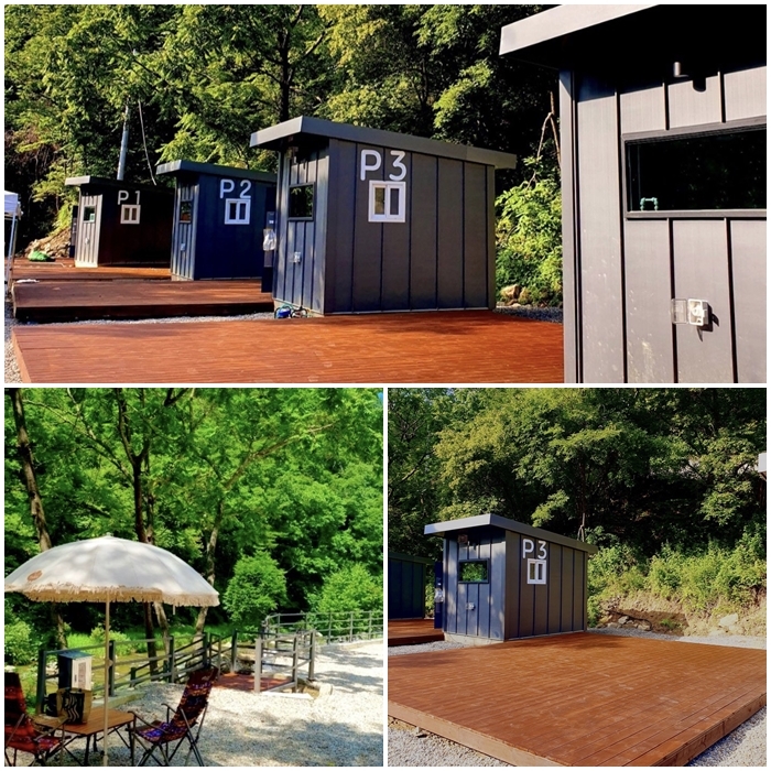 모든 사이트 계곡앞. 프라이빗한데크 사이트. 접이식 타프제공