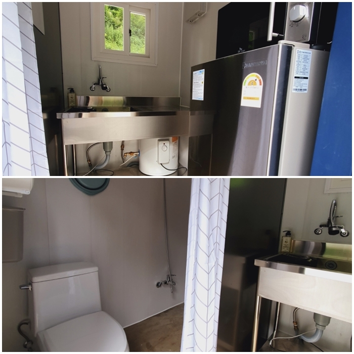 개별 안에는 화장실.샤워실.씽크대.냉장고.전자렌지 완비.